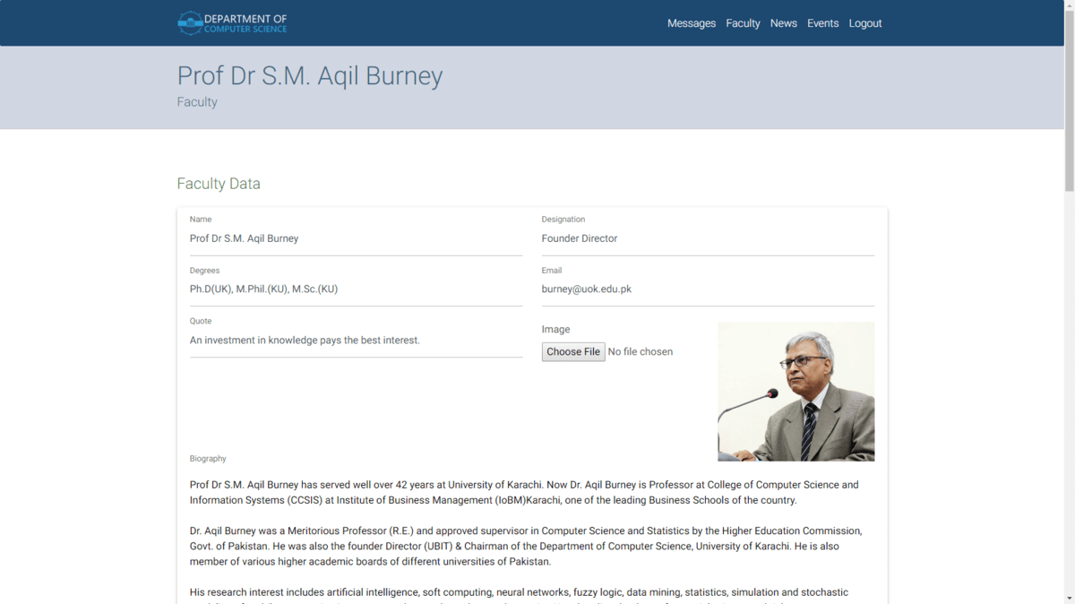 Official website for Department of computer science UBIT, Karachi University. This website displays Programs offered, Faculty, admissions and news and events.